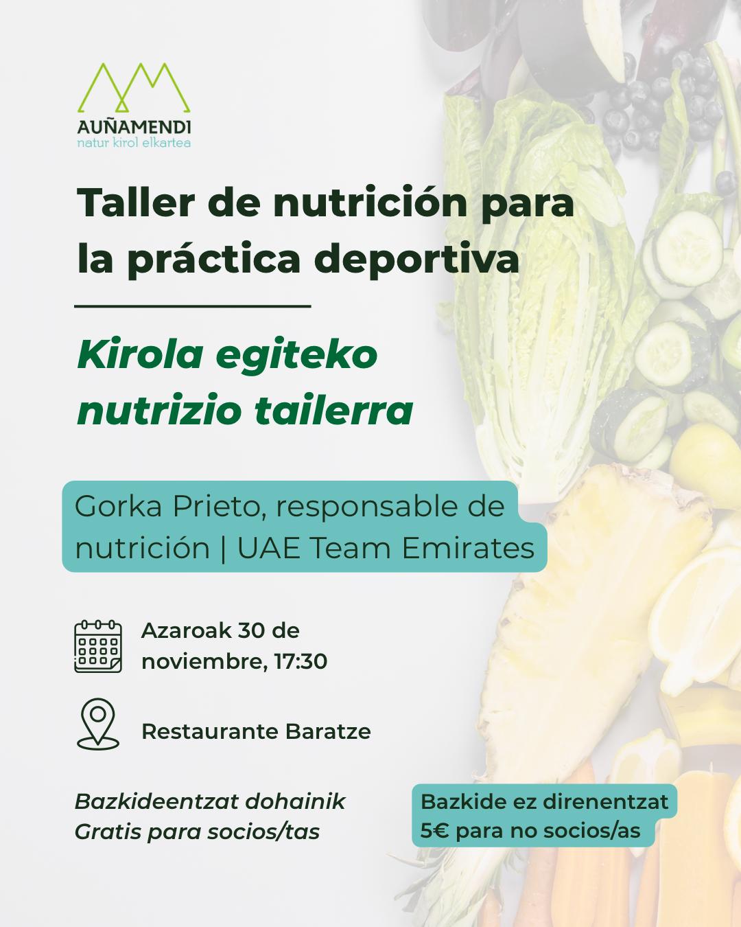 Nutrizioa eta Kirolaren arteko erlazioaren inguruko formakuntza saioa antolatu du Auñamendi Natur Kirolak elkarteak