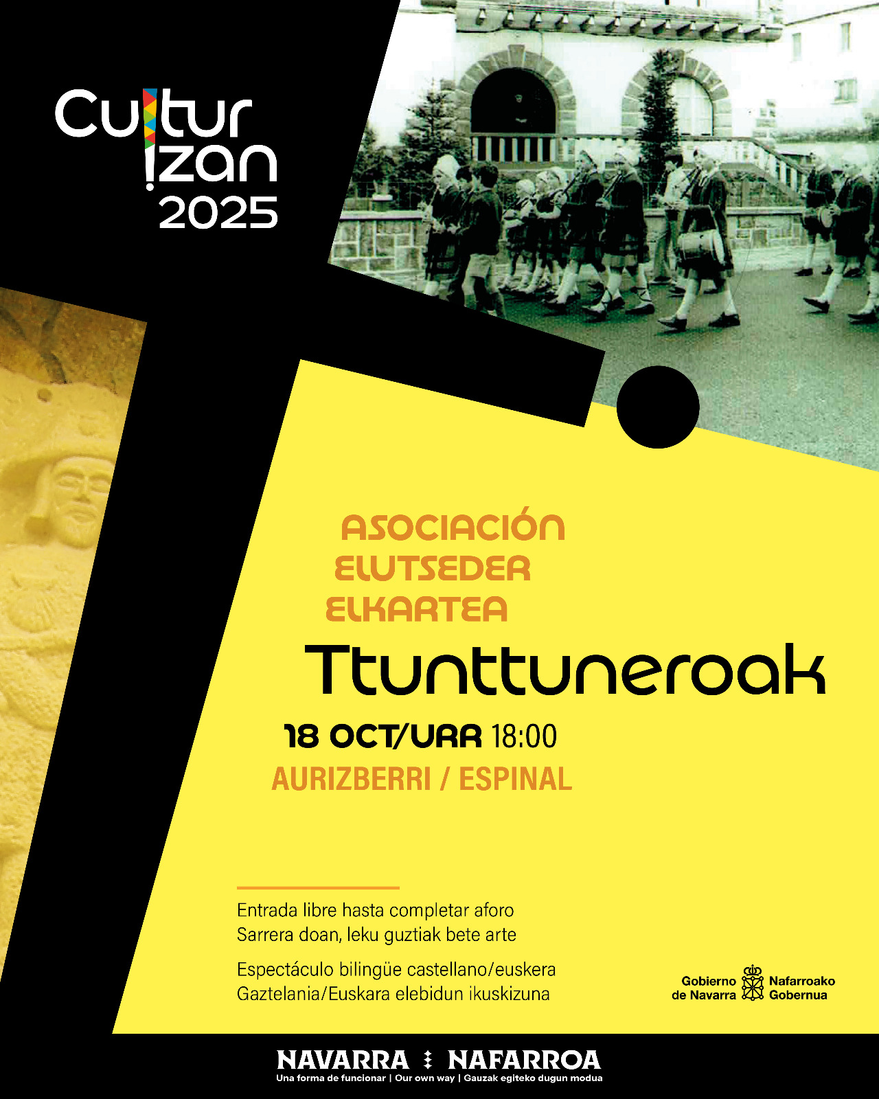 Elutseder elkarteak bultzatuta eta Nafar Gobernuak abian jarritako CulturIzan programak diruz-lagunduta Aurizberrin larunbata honetan Ttunttuneroak omenduko dituzte ekitaldi mugikor baten bidez. Zehazki Silverio Villanueva aintzioatarra izanen da ekinaldi honen hizpide eta Pedro Martinen etxetik abiatuko da Ttunttuneroak ekitaldiko kalejira. Kalejira honek 4 geldialdi izanen ditu, iraganetik hasita etorkizunera begira jarriko gaituena. Bertan, Aurizberriko txistulariak, dantzariak, […]